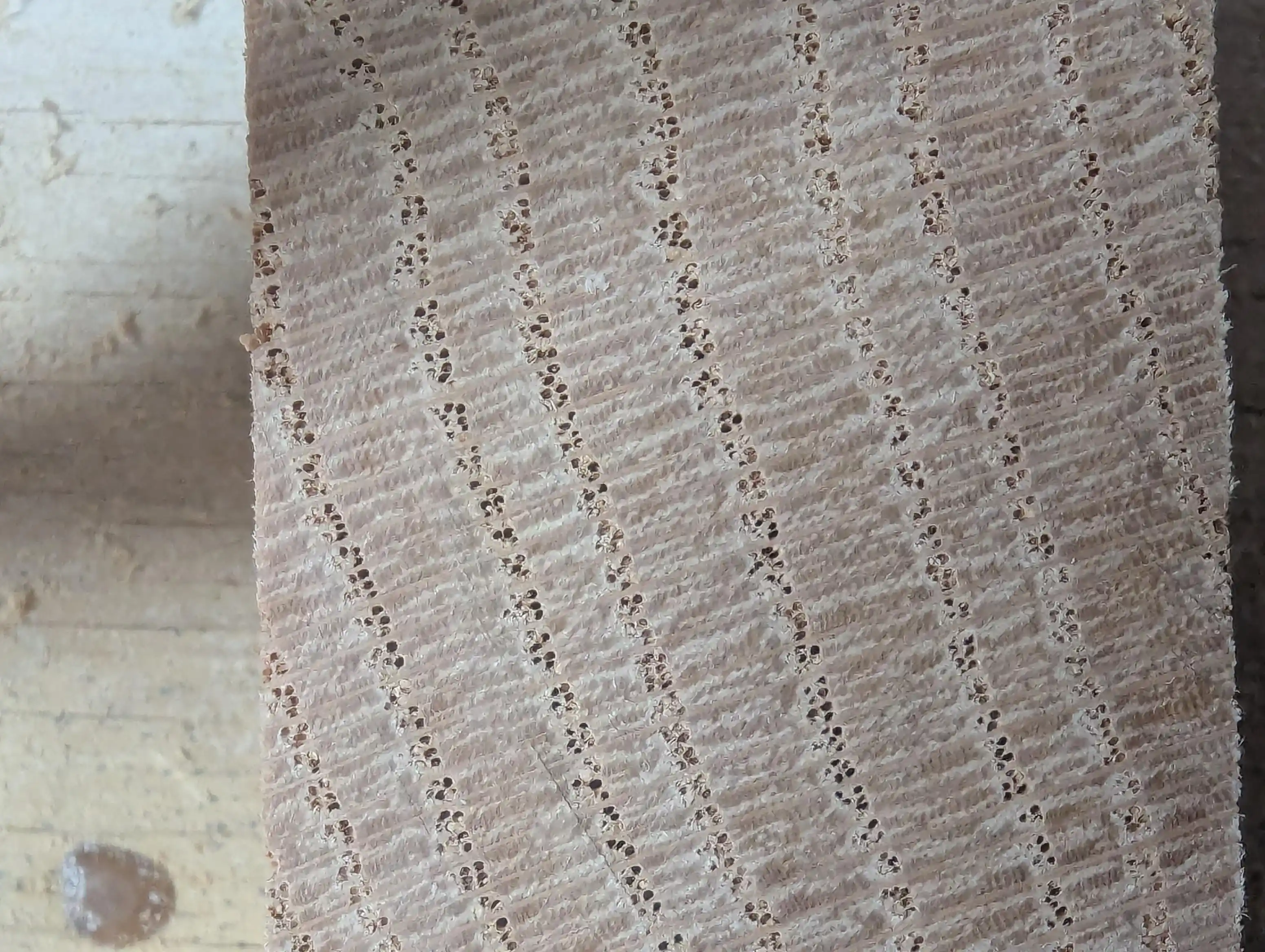 Bendy ply uçlarını kapatmak için masif beyaz meşe kenar bantlama yapılmıştır. Bu bantlama, çoklu parçaların birleştirilmesi (scarf joint) ve önceden ıslatılarak eğriltilip yapıştırılmasıyla hazırlanmıştır. Bantlama, daireye yapıştırıldıktan sonra yüzey düzleştirilmiş ve taşlanmıştır.