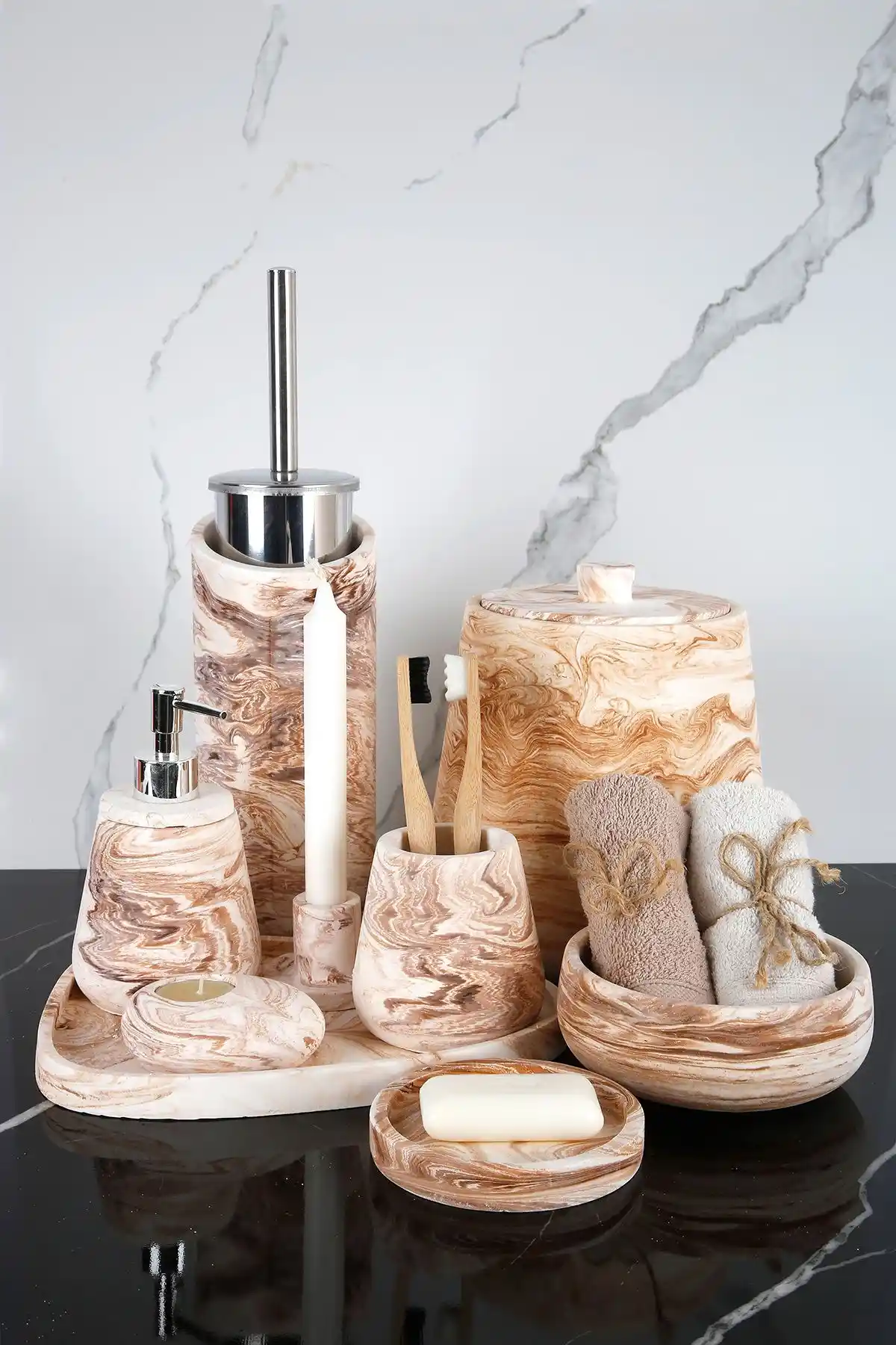 Betonmall'in 11 parçalık mermer desenli beton banyo seti, modern tasarımı ve dayanıklı malzemeleriyle banyonuza şıklık katarken, hijyen ve düzeni sağlar.
