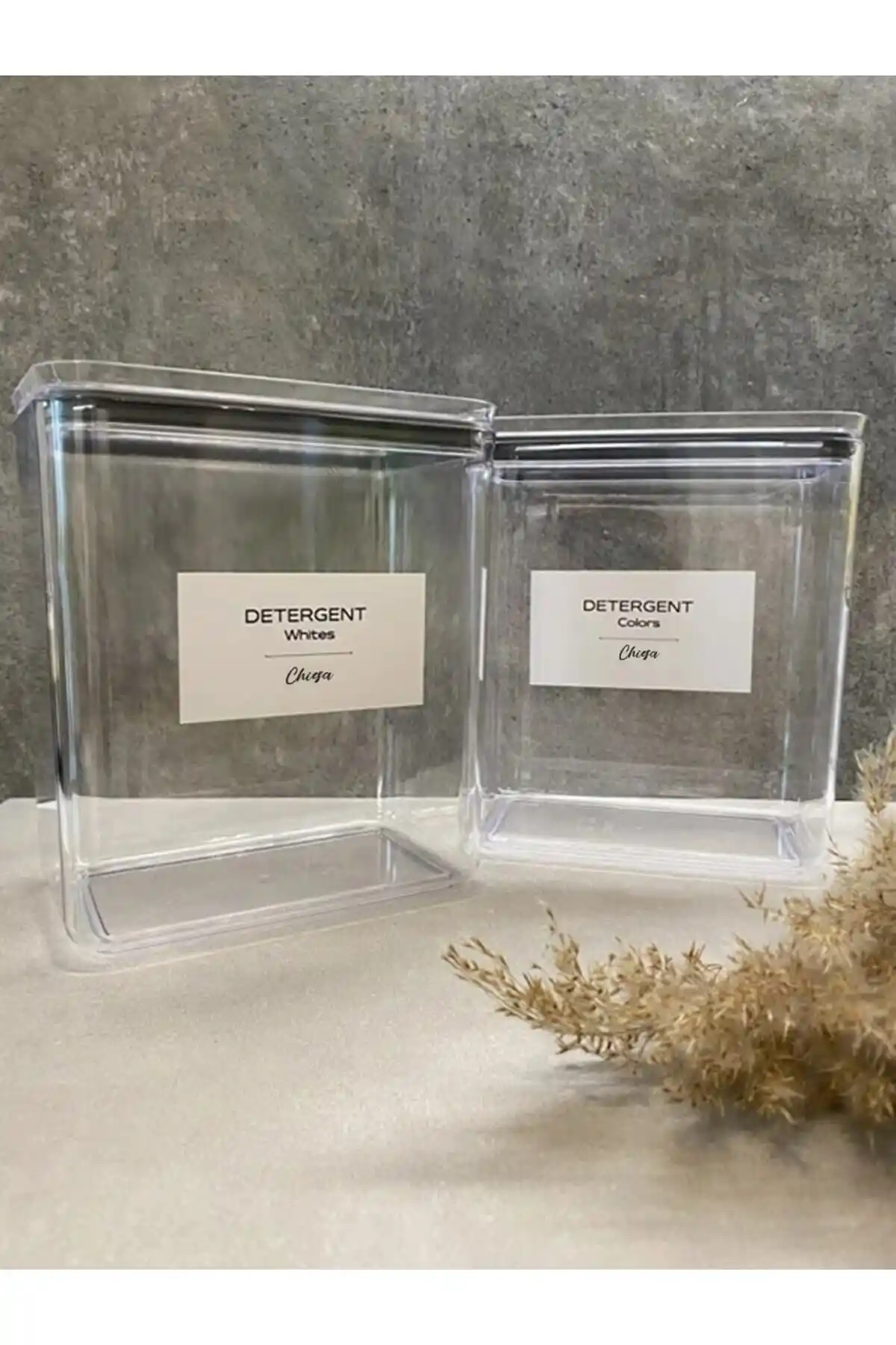 Chiesa markalı deterjan kavanozu ve kutusu, şeffaf yüzeyi ve vakumlu kapağıyla pratiklik ve estetik sunar. Dayanıklı plastik malzeme ve farklı renk seçenekleriyle temizlik alanlarınızda düzen sağlar.