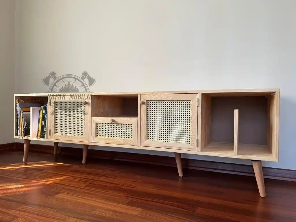Ahşap kitaplık ve TV ünitesi, doğal malzeme ve estetik tasarımlarıyla yaşam alanlarınıza sıcaklık katıyor, dayanıklılığı ve şıklığıyla öne çıkıyor.