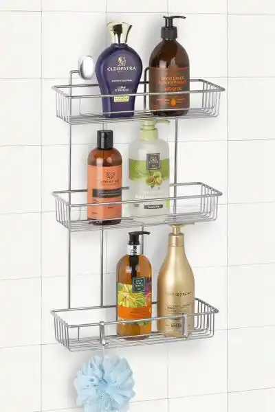 Okyanus Home'un siyah askılı metal duş rafı, dayanıklı malzemesi ve şık tasarımıyla banyonuzda düzen sağlar, montaj kolaylığı ve alan tasarrufu sunar.
