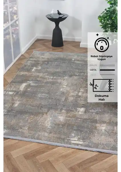 Gri renkli, yüksek kaliteli ve kolay temizlenebilir Konfor Notta 1107 modern dokuma halı, estetik ve fonksiyonellik sunar, uzun ömürlü kullanım sağlar.