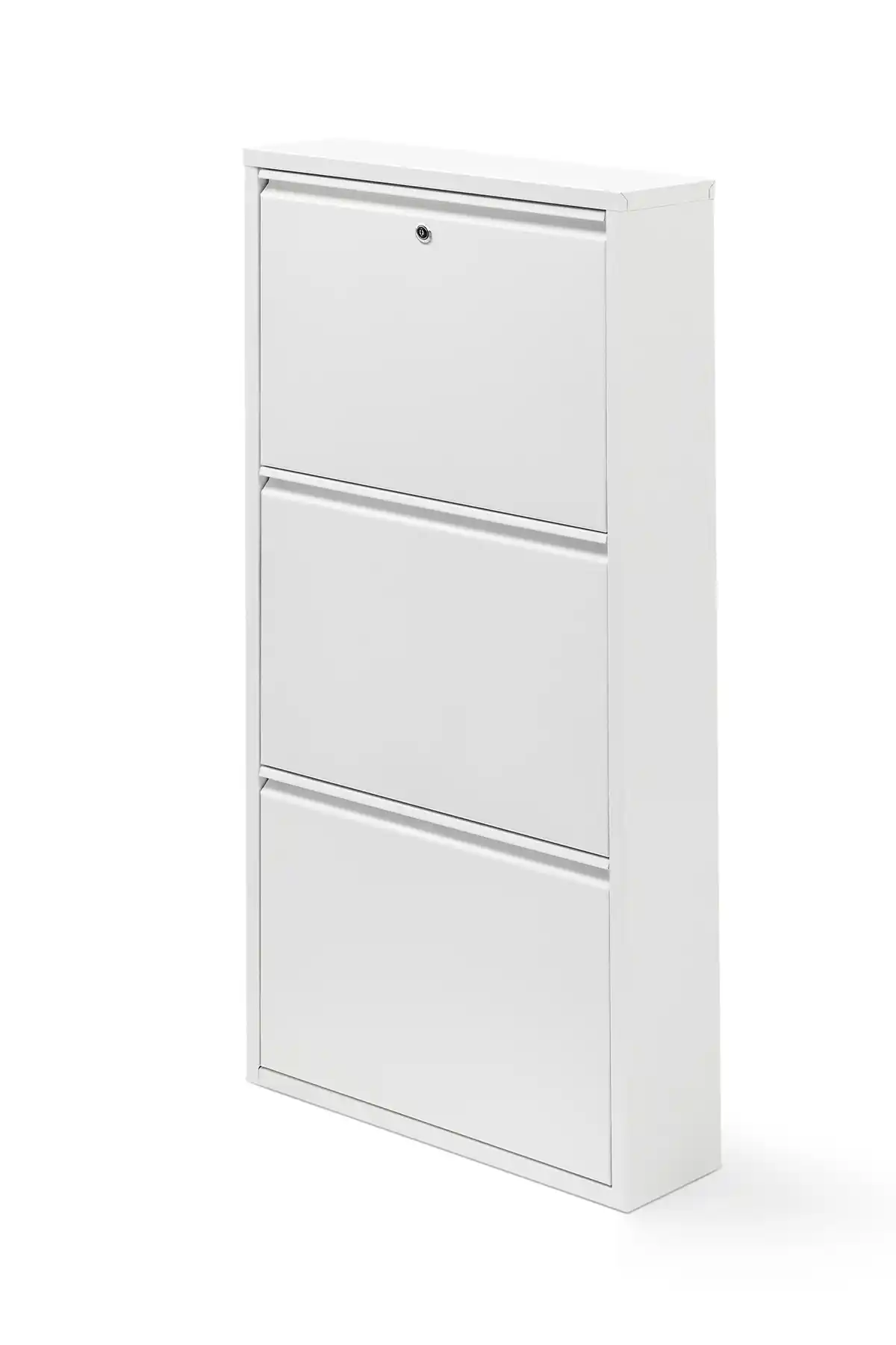 Gaga Mobilya'nın beyaz renkli 3'lü kilitli metal ayakkabılığı, dayanıklı malzemesi ve fonksiyonel tasarımıyla giriş ve küçük alanlar için ideal depolama sağlar. Güvenli saklama ve şık görünüm sunar.
