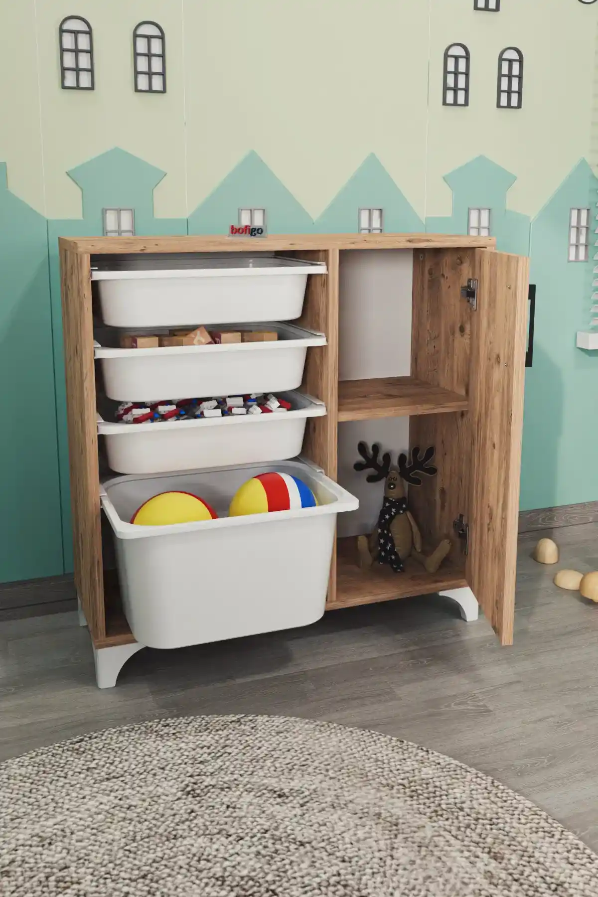 Çocuk odalarında düzeni sağlayan 4 sepetli oyuncak dolapları, pratik ve estetik çözümler sunar. Oyuncakların kategorilere ayrılması ve kolay erişim ile odanın düzeni korunur.