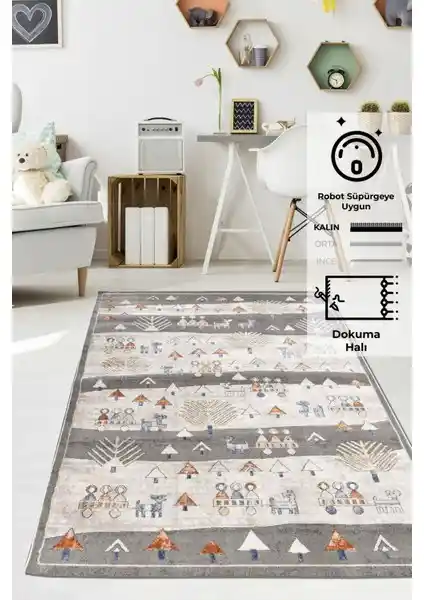 Yüksek dayanıklılık ve şık tasarımıyla Konfor Kids 4583 Motto modern dokuma çocuk halısı, kolay temizlenebilirliği ve konforu ile çocuk odalarına ideal bir seçim sunar.