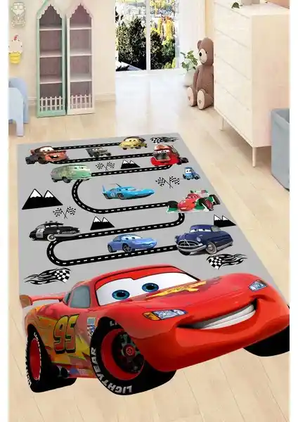 Resmiro'nun Şimşek McQueen çocuk halısı, canlı tasarımı, kaymaz tabanı ve kolay temizlenebilir özelliğiyle çocuklar için güvenli ve şık bir tercih sunar.
