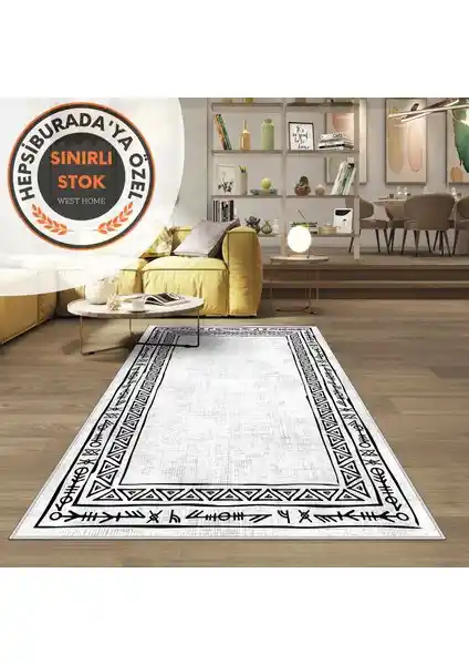West Home'un yıkanabilir, kaymaz tabanlı ve modern tasarımlı salon halısı, kolay temizliği ve dayanıklılığıyla evinizde şıklık ve konfor sağlar.