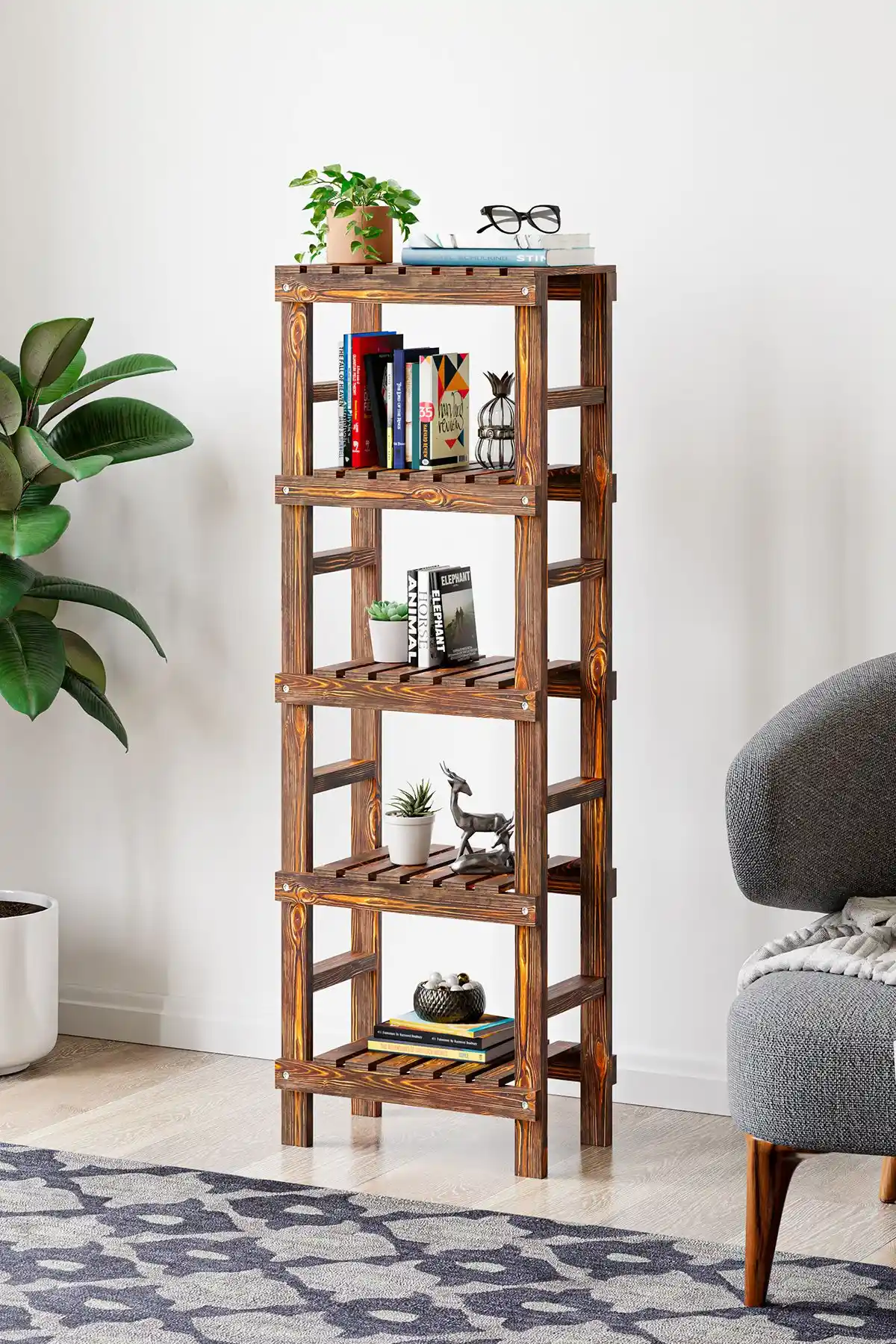 KOVANCI'nin ahşap 5 raflı organizeri, doğal malzeme ve şık tasarımıyla çeşitli alanlarda fonksiyonel depolama sağlar, kolay kurulumu ve estetik görünümüyle öne çıkar.