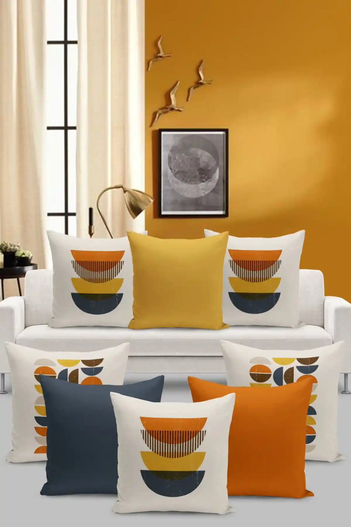 Şık ve dayanıklı mikro petek kumaş, çift taraflı dijital baskı ve kolay bakım özellikleriyle Filamente 8'li kırlent seti, evinizin atmosferini değiştirecek modern tasarımlar sunar.