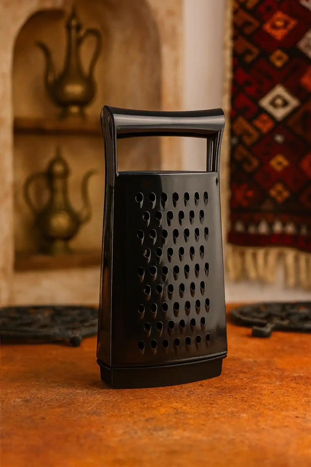 Dayanıklı akrilik malzemeden üretilen Ew's siyah rende, pratik kullanımı ve hazneli tasarımıyla mutfakta zaman kazandırır ve hijyen sağlar.
