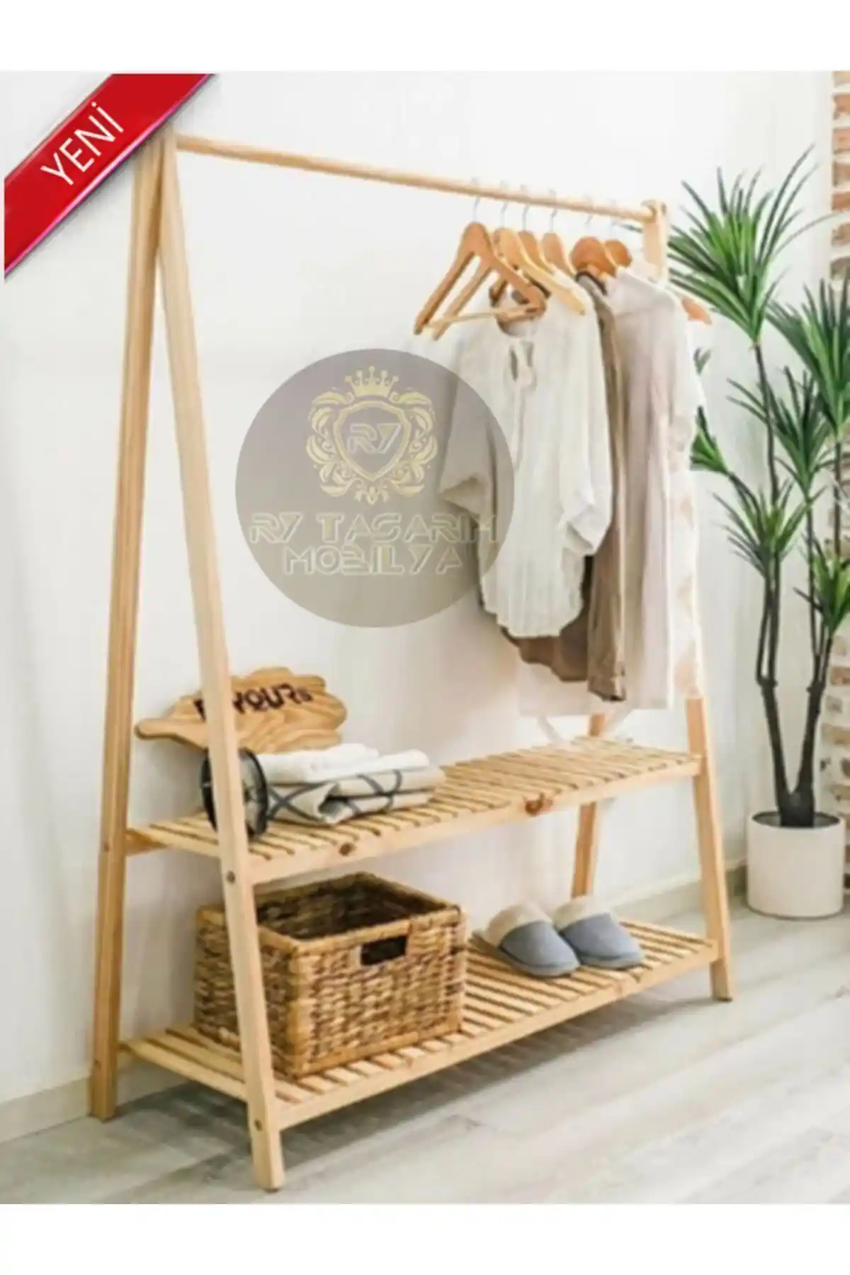 Doğal ahşap malzemeden üretilmiş, modern ve şık tasarımıyla dikkat çeken bu elbise askısı, geniş depolama alanı ve kolay montaj özelliğiyle iç mekanlara estetik katıyor.