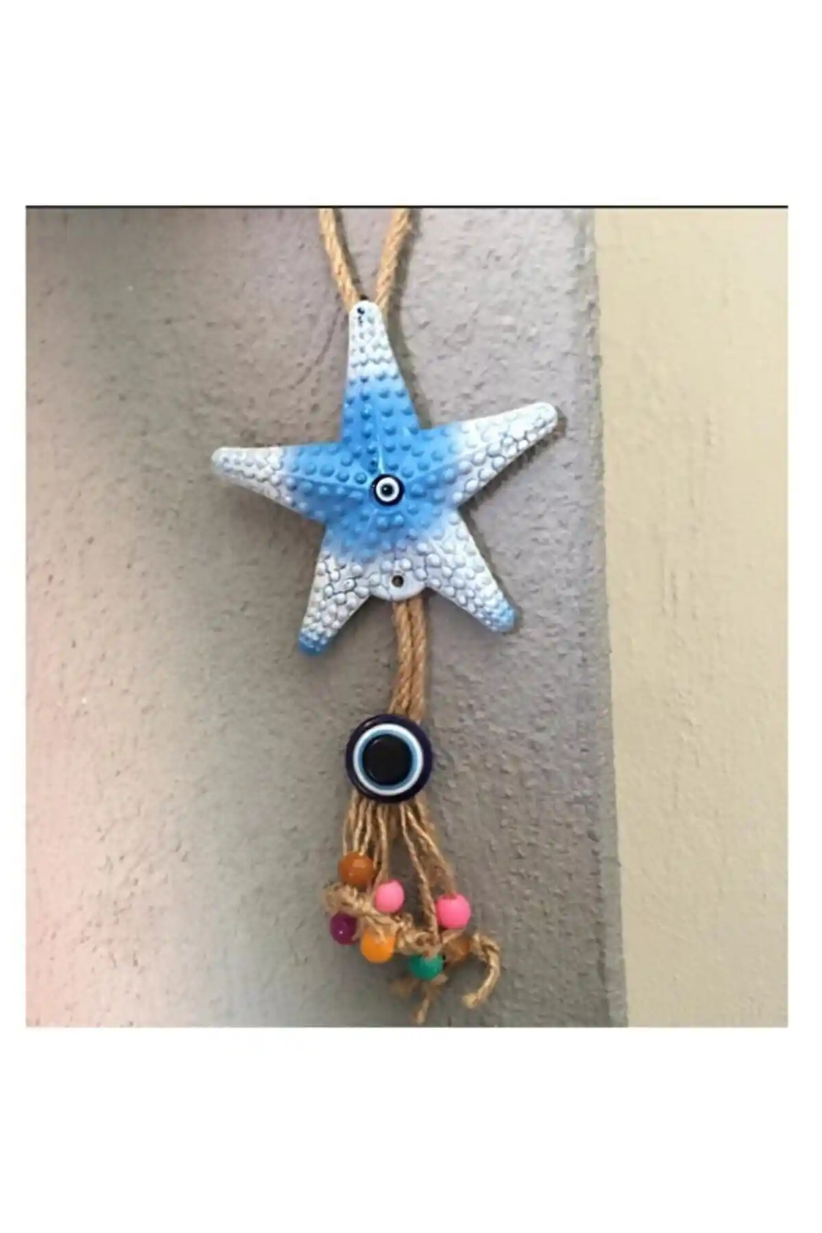 Deniz yıldızı motifleriyle süslenmiş, mavi ve beyaz renklerde çatlatma efektiyle gerçekçi bir görünüm sunan duvar süsü, iç ve dış mekanlarda deniz temasıyla şıklık sağlar.