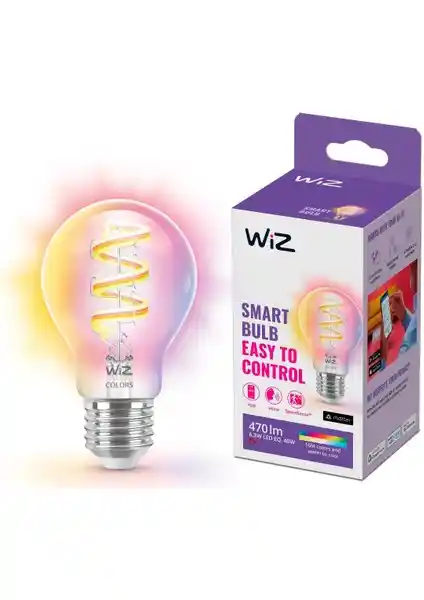 Wiz RGB Filament Şeffaf 40W E27 Akıllı Ampul, uzaktan kontrol, renk seçenekleri ve enerji tasarrufu ile ev ve ofislerde estetik ve fonksiyonel aydınlatma sağlar.
