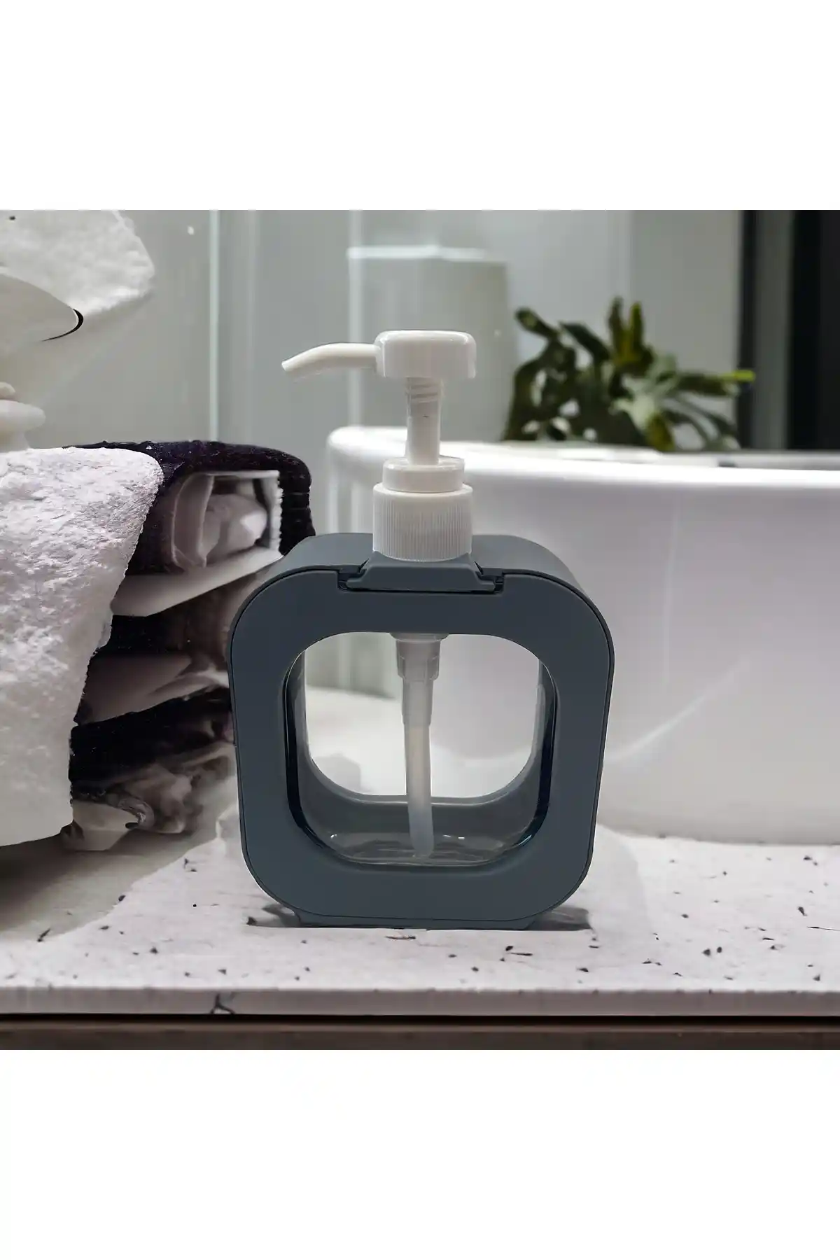 Mimoza Park'ın 400 ml kapasiteye sahip dikdörtgen sıvı sabunluğu, şık tasarımı ve dayanıklı malzemesiyle mutfak ve banyolarda düzen sağlar, hijyenik kullanım sunar.
