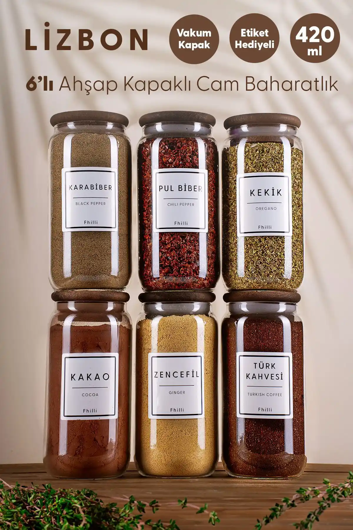 Fhilli Lizbon seti, yüksek kaliteli borosilikat cam ve doğal ahşap kapaklarıyla mutfak düzeninizi sağlar, tazeliği korur ve şık görünüm sunar.