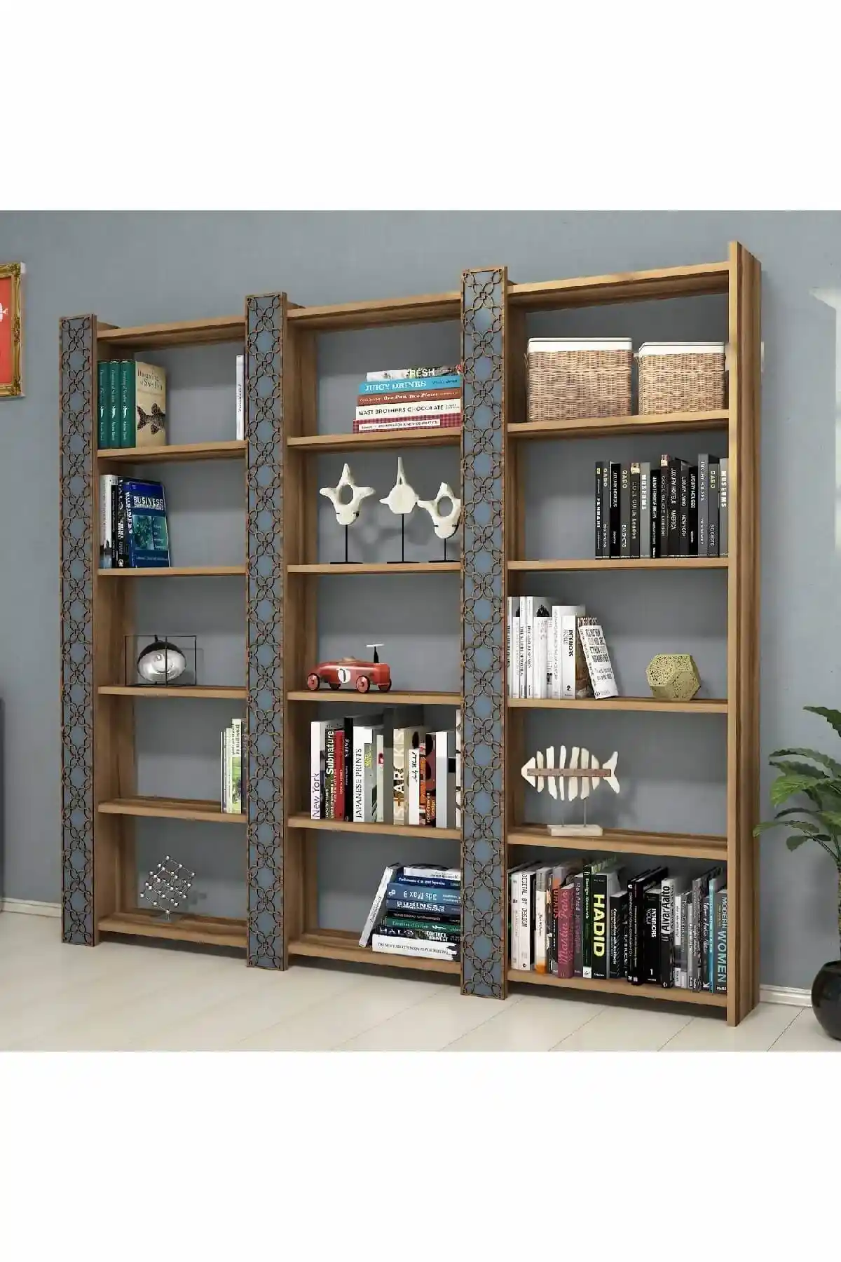 Modern tasarımlı üçlü kitaplıklar, estetik ve fonksiyonelliği bir araya getirerek yaşam alanlarınızı şık ve düzenli hale getirir, çeşitli malzeme ve tasarım seçenekleriyle geniş kullanım alanı sunar.