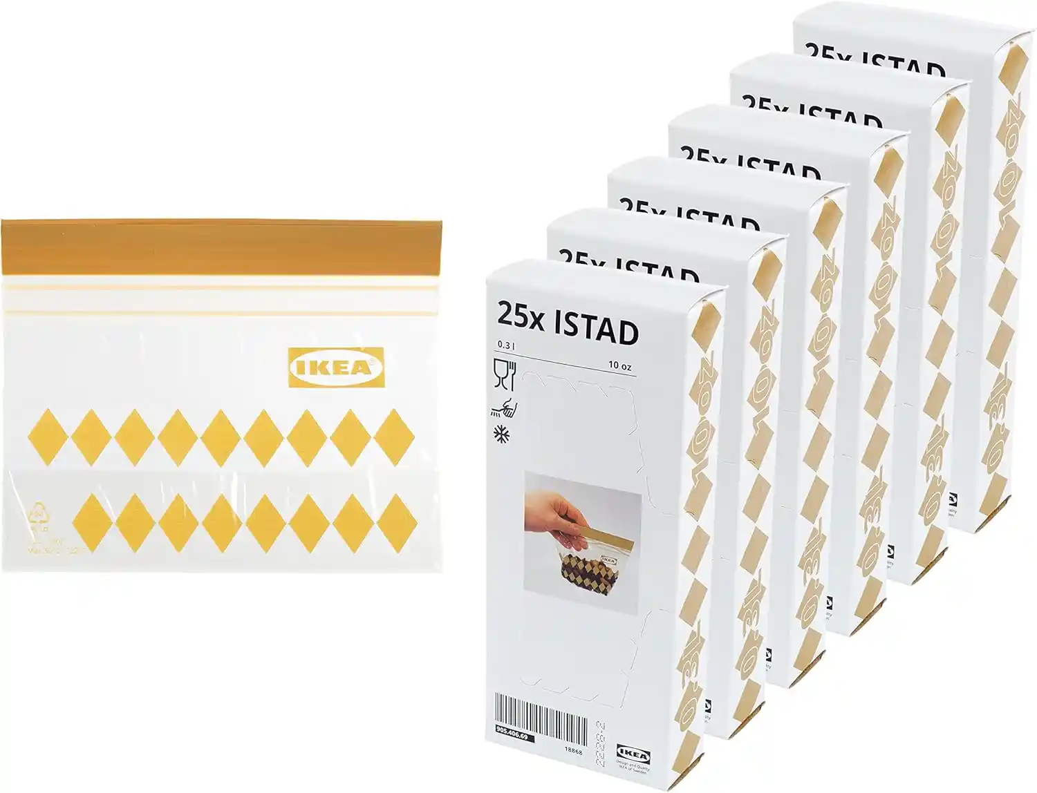 İKEA'nın İstad fermuarlı poşetleri, çeşitli boyut ve tasarımlarla dayanıklı, güvenli ve pratik saklama sağlar, ev ve seyahatlerde kullanım kolaylığı sunar.