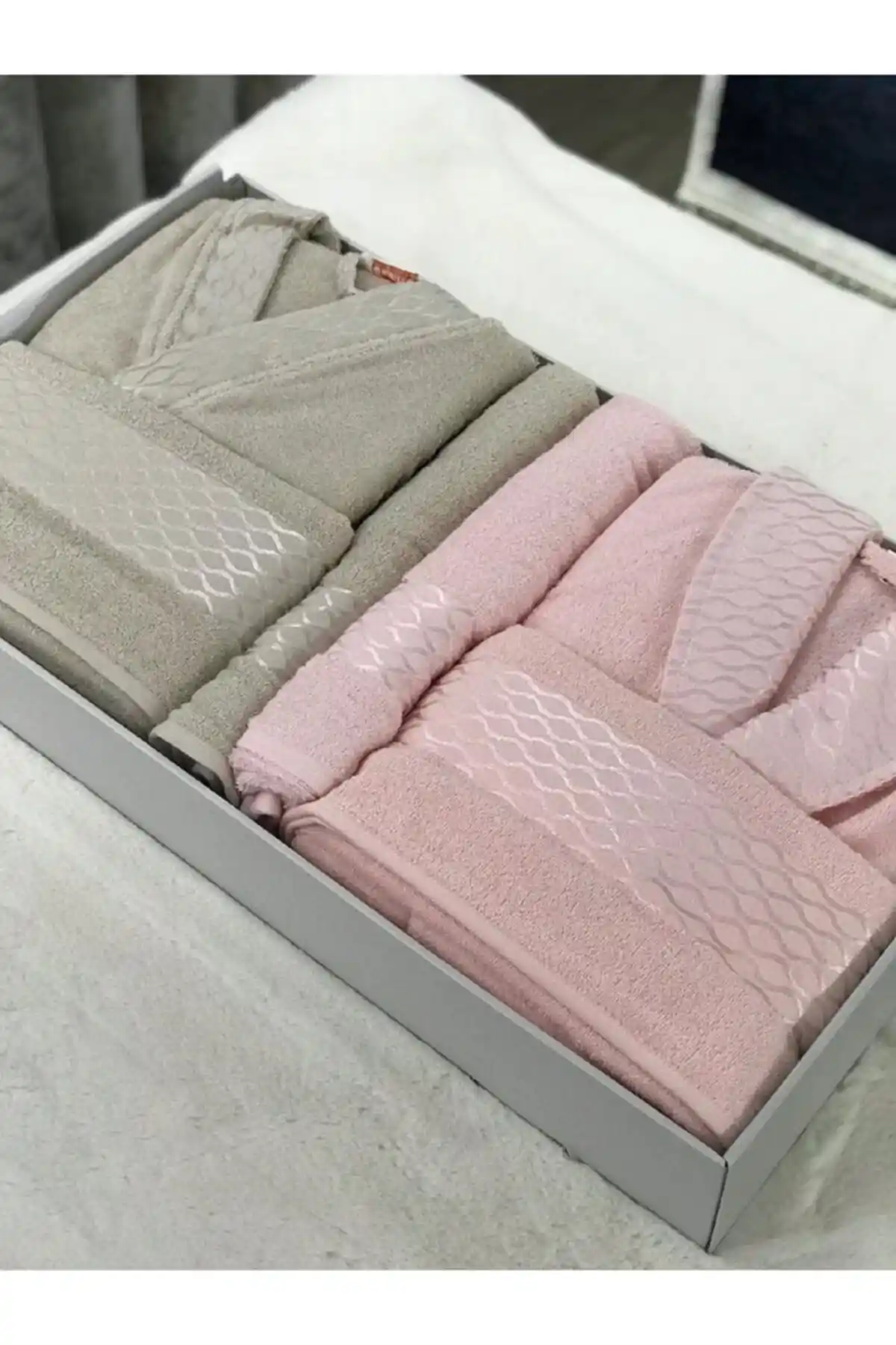 Özdilek Elissa Bornoz Takımı, %100 pamuk yapısı ve şık taş-pudra renkleriyle konfor ve estetiği bir arada sunar. Set, bornoz, banyo ve baş havlularından oluşur, geniş beden seçenekleriyle rahat kullanım sağlar.
