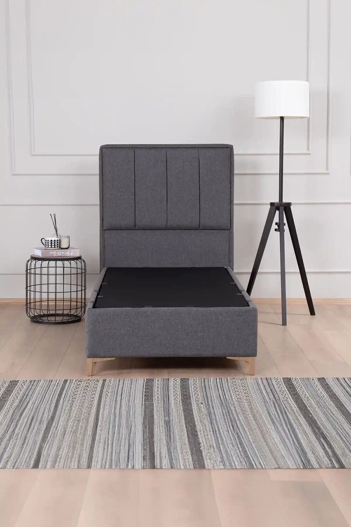 Kilim Mobilya'nın 2023 koleksiyonundan Gold Therapy sandıklı baza, şık gri tasarımı ve pratik depolama alanıyla küçük alanlar ve genç odaları için ideal bir yatak çözümüdür.