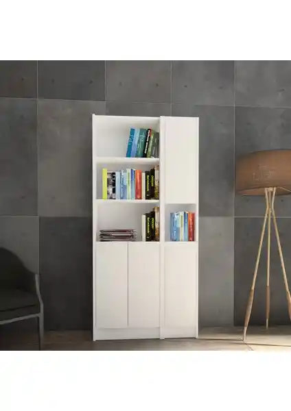 %100 MDF laminat malzemeden üretilmiş, kolay montajlı ve estetik tasarımlı beyaz kapaklı kitaplık K-39 ile depolama alanlarınızı genişletin, şıklık ve dayanıklılığı bir arada yaşayın.