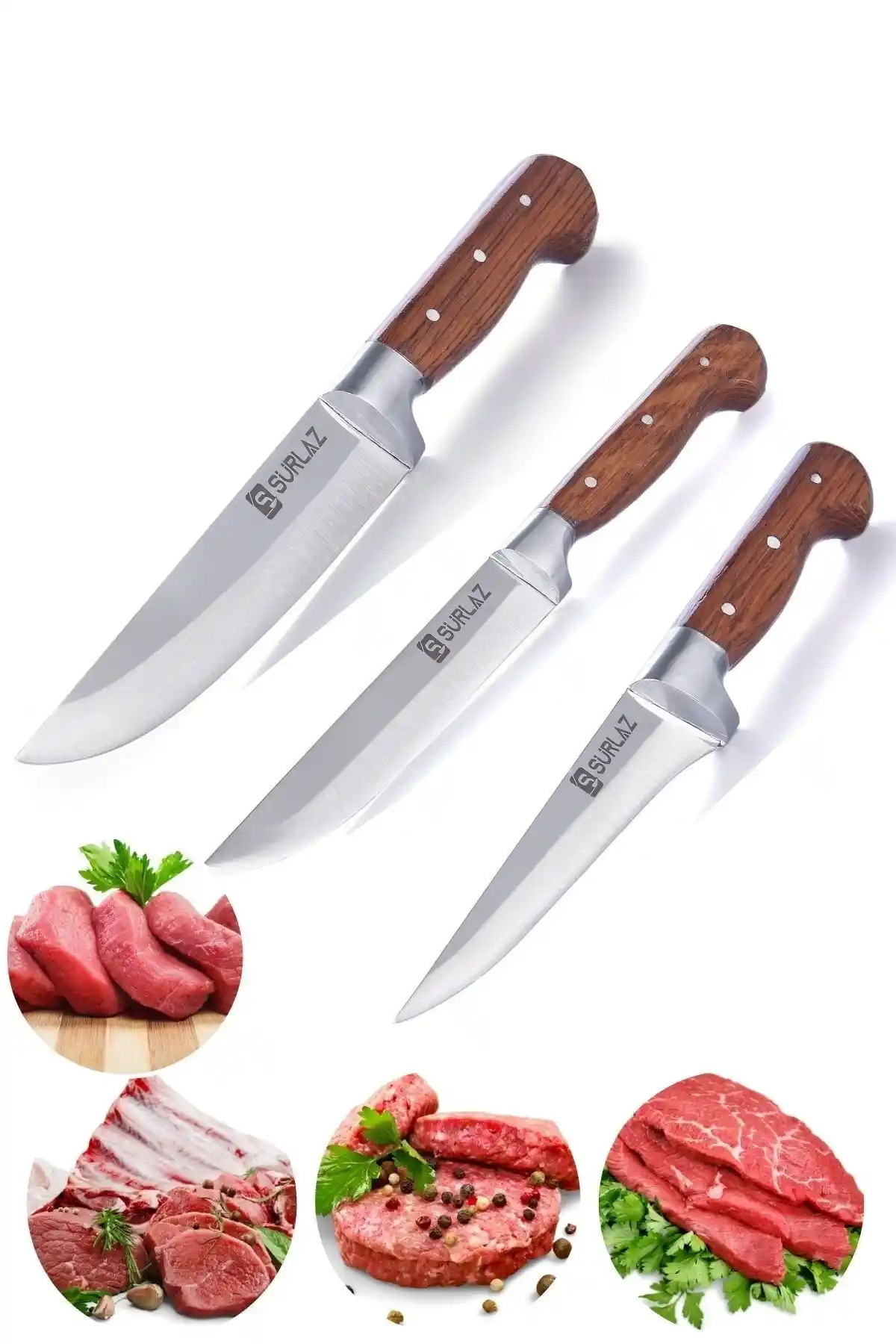 SürLaz tarafından üretilen bu set, yüksek karbonlu paslanmaz çelik ve ergonomik ceviz saplarıyla dayanıklı ve keskin bıçaklar sunar, mutfakta verimliliği artırır.