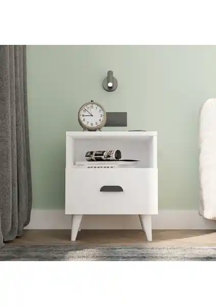 Minimalist tasarımı ve fonksiyonelliğiyle öne çıkan beyaz komodin, dar alanlar için ideal olup, kolay montaj ve dayanıklı yapısıyla kullanıcı memnuniyetini artırır.