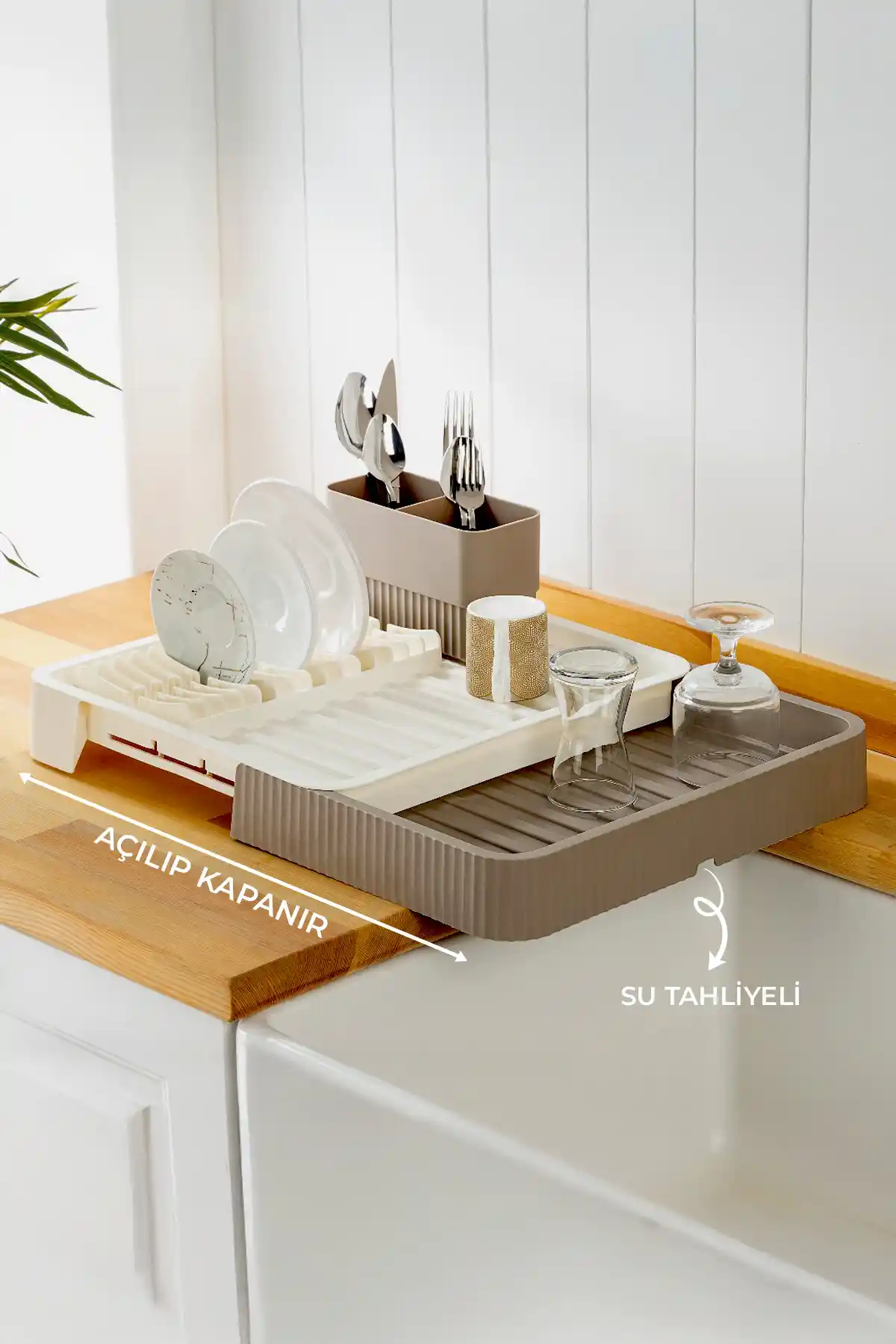 Dayanıklı plastik malzemeden üretilmiş, açılıp kapanabilen sürgülü bulaşık kurutma sepeti, geniş hacmi ve estetik tasarımıyla mutfaklarda pratiklik sunar.
