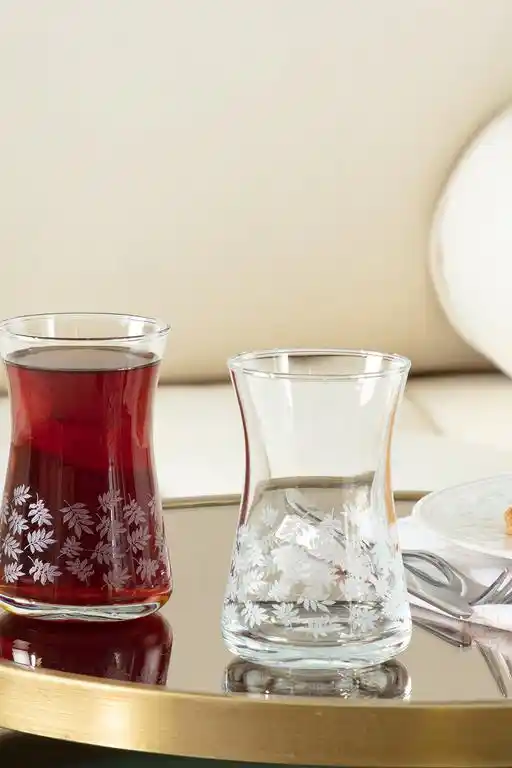Madame Coco'nun Esperanza White Leaves seti, şık tasarımı ve dayanıklı cam yapısıyla günlük ve özel anlar için ideal, sağlıklı ve pratik kullanım sunar.