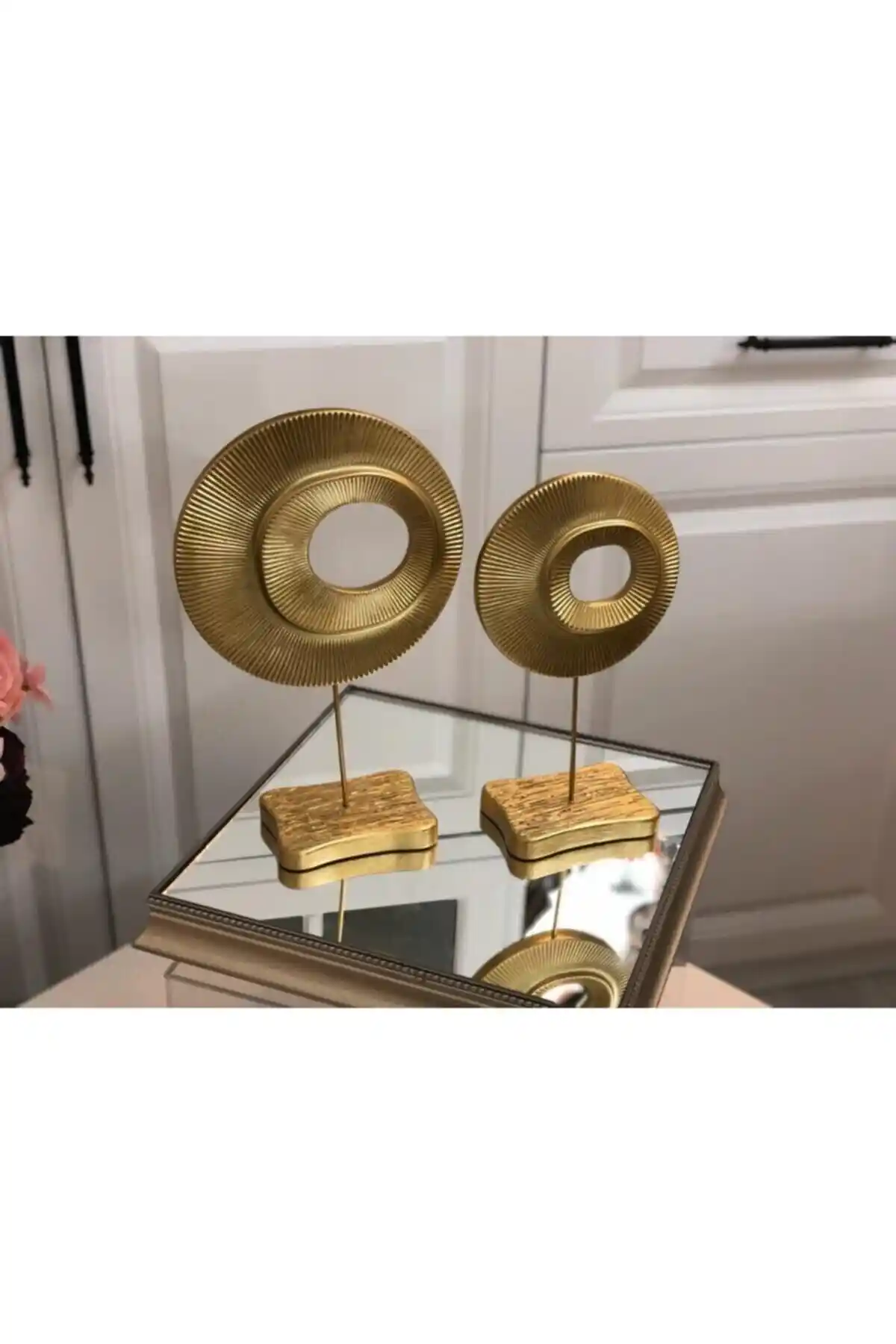 Ev dekorasyonunuza modern ve şık bir dokunuş sağlayan Pavlonya Altın Varaklı İkili Halka Biblo, zarif tasarımı ve dayanıklı malzemeleriyle dikkat çeker, yaşam alanlarınızı güzelleştirir.