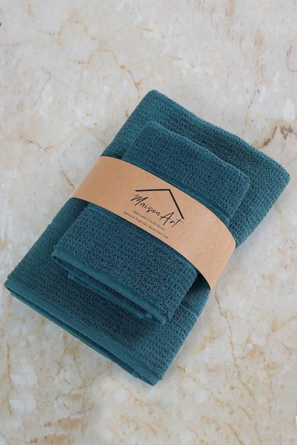 %100 pamuklu MaisonArt Royal banyo havlu seti, canlı mavi tonu ve sade tasarımıyla yüksek emicilik ve dayanıklılık sağlar, günlük kullanım için ideal bir seçenektir.