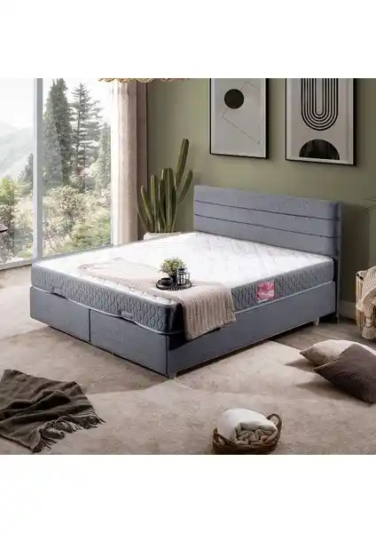 Setay Sofia ikili baza ve başlık seti, modern gri tasarımı, dayanıklı malzemeleri ve kolay montajıyla yatak odalarına şıklık katıyor, uzun ömür ve konfor sunuyor.