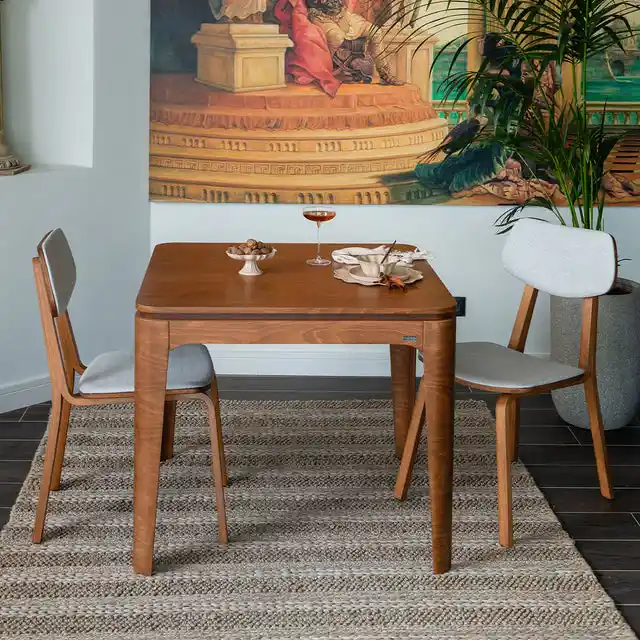 Doğal ceviz ağacının sıcaklığı ve dayanıklılığıyla, açık ceviz rengi masalar modern ve şık dekorasyonlara mükemmel uyum sağlar, uzun ömürlü ve çok yönlü kullanım sunar.