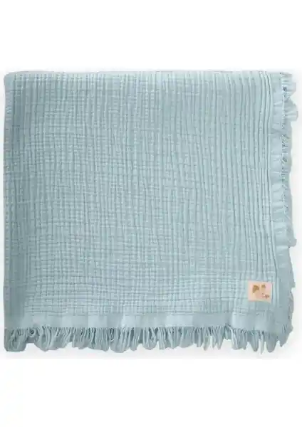 Yüksek kaliteli, doğal pamuktan üretilmiş, dört katlı püsküllü battaniye, hafifliği ve dayanıklılığıyla bebeklerin ve çocukların kullanımına uygun, şık ve fonksiyonel bir tekstil ürünüdür.
