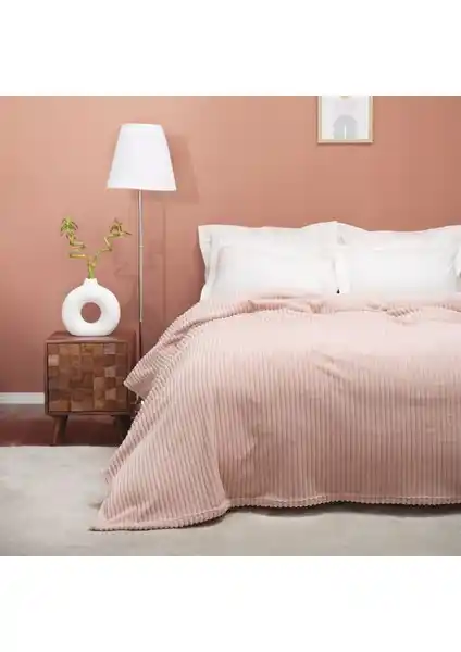 Karaca Home'un Joena Pudra çift kişilik battaniyesi, yumuşak dokusu ve şık tasarımıyla evinizde sıcaklık ve estetiği bir arada sağlar, kolay bakım özellikleriyle günlük kullanım için idealdir.