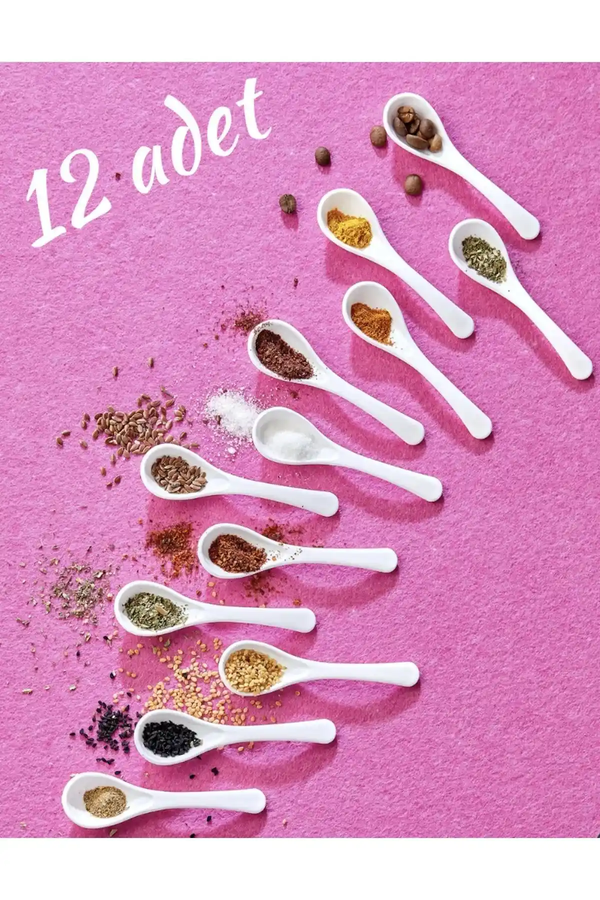 12 adet beyaz plastik servis ve baharat kaşığı seti, hafif ve dayanıklı yapısıyla 12 kişilik kullanım sağlar, porsiyon kontrolü ve şık görünüm sunar.