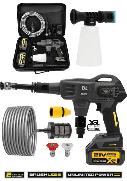 Assur 21V akülü yüksek basınçlı yıkama makinesi, hafifliği ve güçlü performansıyla araç ve çevre temizliğinde inovasyon sunar. Hızlı şarj ve dayanıklı yapısıyla çok yönlü kullanım sağlar.