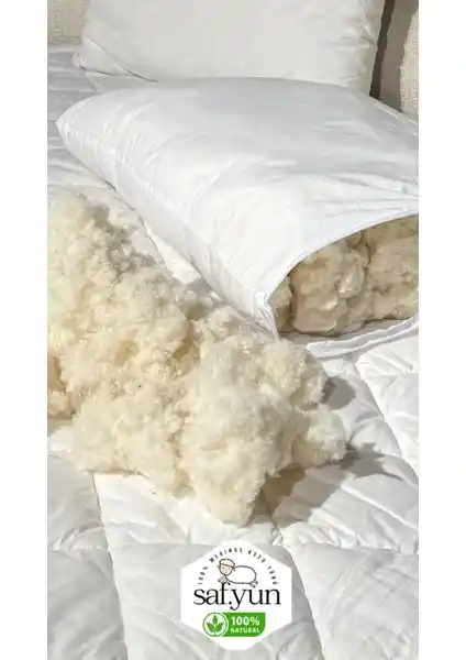 Safyün saf yün yastık, doğal Merinos kuzu yününden üretilmiş, fermuarlı yapısıyla ayarlanabilir ve konforlu bir uyku sağlar. Sağlıklı ve doğal malzemeleriyle öne çıkar.