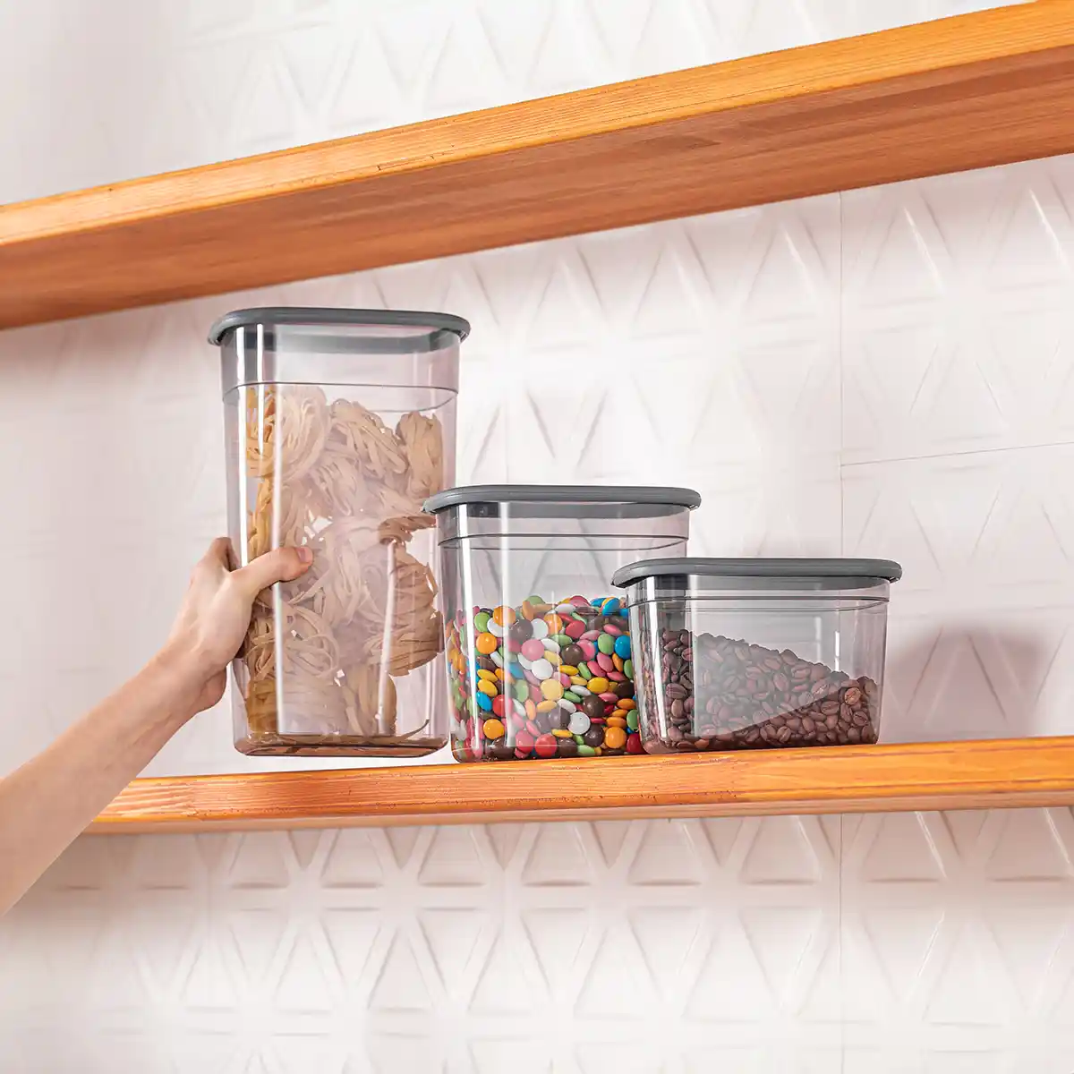 Nesto Home'un 3'lü 10 litrelik saklama kabı seti, dayanıklı malzemeleri ve modern tasarımıyla mutfakta pratiklik sağlar, geniş hacmiyle çok yönlü kullanım imkanı sunar.