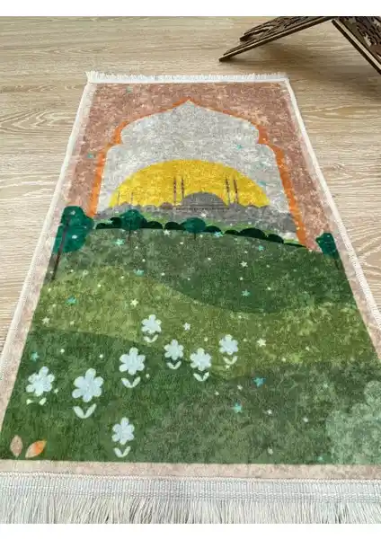 Çocuklar için tasarlanan Brillant 50x80 seccade, dayanıklı kumaş, kaymaz taban ve dini motiflerle estetik ve kullanışlı bir ibadet aksesuarıdır.