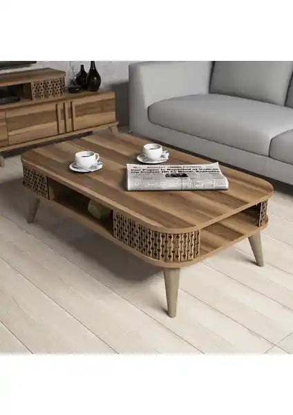 Variant Eylül Orta Sehpa, ceviz rengi ve dayanıklı malzemeleriyle modern yaşam alanlarına şıklık katarken, kolay kurulumu ve bakım avantajlarıyla öne çıkar.