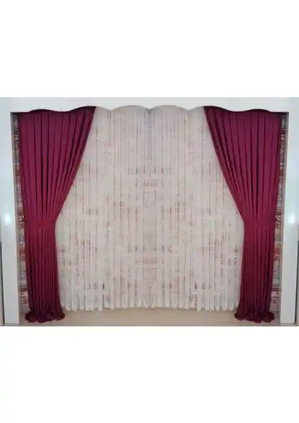Şarap rengi kadife perde, fon tipi ve çift kanat tasarımıyla şıklık ve kullanım kolaylığı sunar. 1/3 sık pile yapısı, güneşe dayanıklılığı ve bakım kolaylığıyla uzun ömürlü ve estetik bir seçenek sağlar.