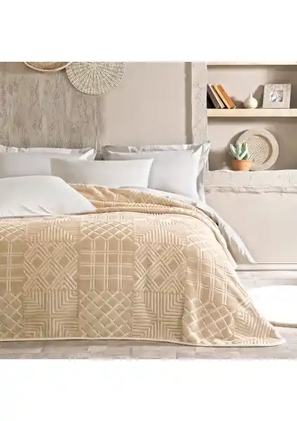 İskandinav tarzında bej renk ve geometrik desenlerle tasarlanmış, şönil malzeme ile konforlu ve dayanıklı çift kişilik yatak örtüsü, kolay bakım ve çevre dostu paketleme ile dikkat çekiyor.
