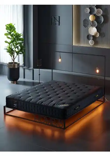 Homevs Silver Ergo Siyah Serisi, 150x200 cm ölçülerinde, yaylı yapısı ve modern tasarımıyla konfor ve dayanıklılığı bir arada sunar. 7 bölgeli yay sistemi ve yüksekliğiyle kullanışlı ve şık bir yatak seçeneği.