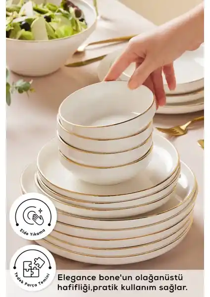 Kütahya Porselen'in Bone Mare 62 Parça Yemek Takımı, şık desenleri ve altın detaylarıyla 12 kişilik kapasitesiyle dikkat çekiyor. Dayanıklı porselen malzeme, modern tasarım ve bakım ipuçlarıyla uzun ömür sağlar.