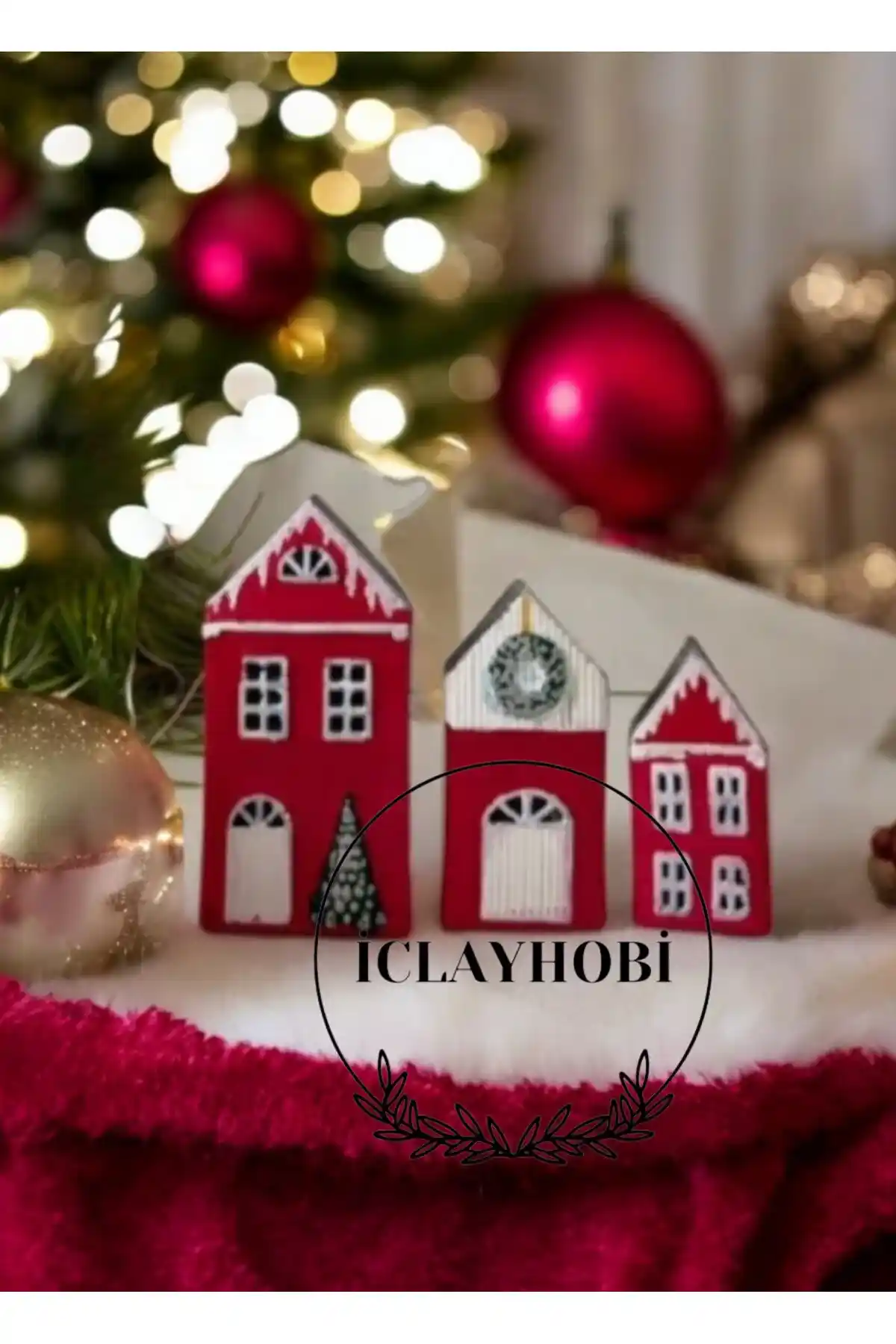 Küçük boyutlu ve estetik tasarımlara sahip 3'lü set Noel evleri, yılbaşı atmosferini güçlendiren ve iç mekanlara sıcaklık katan dekoratif ürünlerdir.