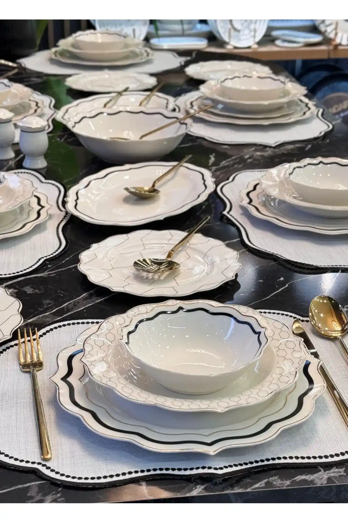 EVSTYLE Ayaklı Porselen Lokumluk Seti, gümüş kaplama ayaklar ve çıkartılabilir kase ile zarafet ve işlevsellik sunar. 20 L kapasite sayesinde geniş sunumlar; 12 parça olarak gösterilen kaynak farkı ambalaj varyasyonlarından kaynaklanır, temizliği kolaydır.